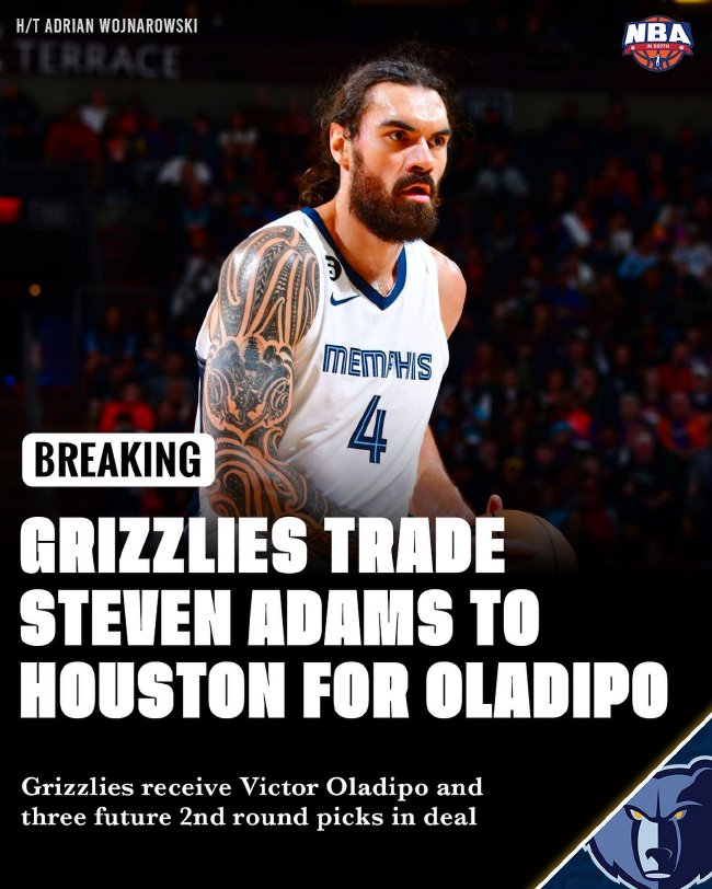 北京时间2月2日,据著名NBA记者沃神报道,火箭与灰熊达成交易,史蒂夫-亚当斯和维克多-奥拉迪波互换东家。具体交易内容为:火箭送出奥拉迪波和3个次轮签,从灰熊换回亚当斯。