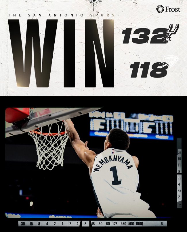 文班28+13+7+5马刺终结雷霆6连胜 篮网擒老鹰
