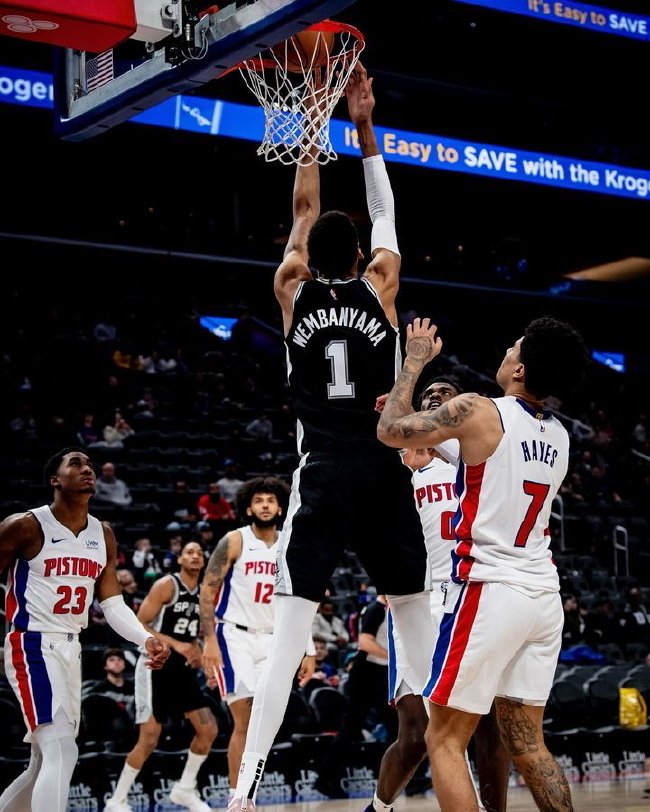 文班三双马刺大胜活塞止5连败 国王大胜黄蜂