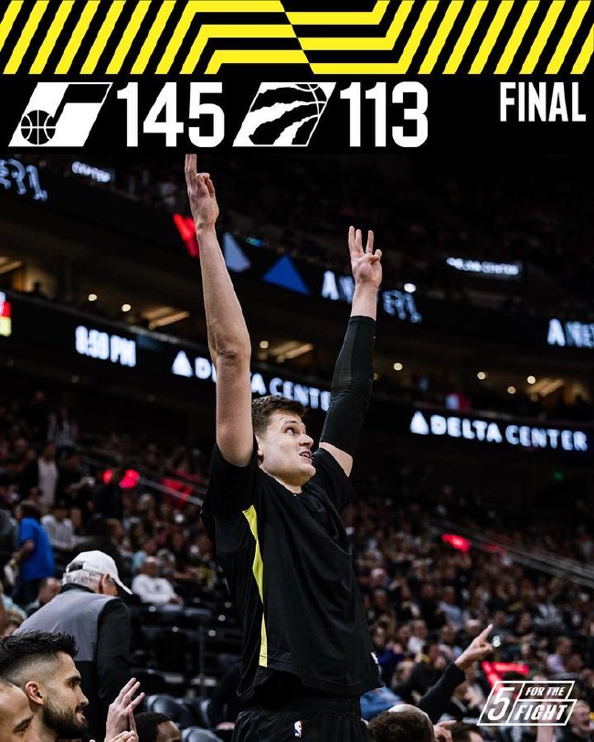北京时间1月13日,NBA常规赛,以下是两场比赛的综述。爵士145-113大胜猛龙:爵士取得一波4连胜,挤掉湖人进入附加赛区。马尔卡宁砍下22分9篮板,克拉克森21分5助攻,塞克斯顿20分5助攻,丰泰基奥13分,凯斯勒12分6篮板3盖帽,奥利尼克11分10篮板5助攻。