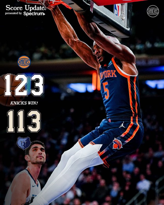布伦森40分尼克斯险胜步行者9连胜 骑士擒灰熊