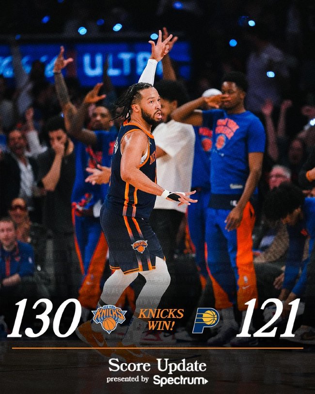 北京时间5月7日,NBA季后赛东部半决赛,尼克斯121-117险胜步行者,尼克斯大比分1-0步行者。尼克斯(1-0):布伦森43分6篮板6助攻、迪文琴佐25分3篮板、哈特24分13篮板8助攻、哈腾13分6篮板4助攻、阿奴诺比12分9篮板4助攻