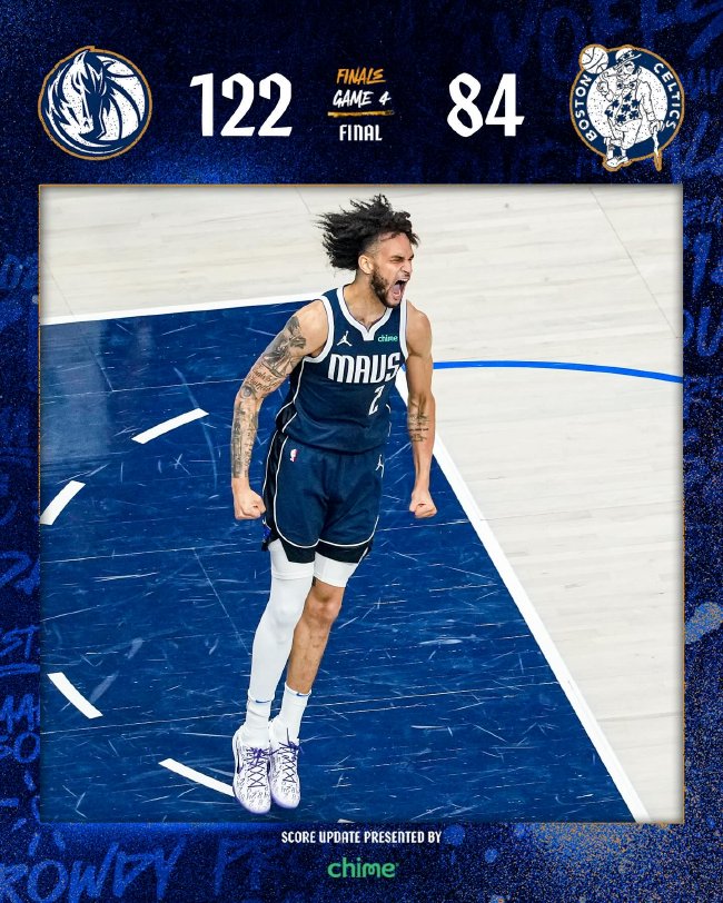 北京时间6月15日,NBA总决赛G4,独行侠122-84大胜凯尔特人,独行侠将大比分追至1-3。独行侠(1-3):东契奇29分5篮板5助攻3抢断、欧文21分4篮板6助、哈达威15分3篮板、莱夫利11分12篮板、艾克萨姆10分